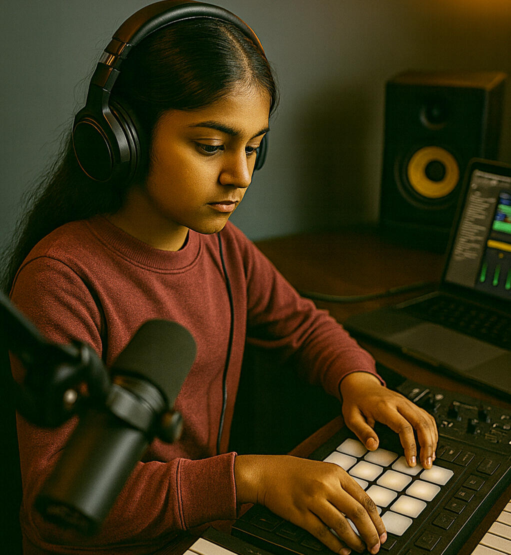 At this stage, students refine their sound and own their voice as creators. They dive into mixing, polishing their tracks, and thinking like pro producers, from concept to completion. This is where creativity meets mastery.